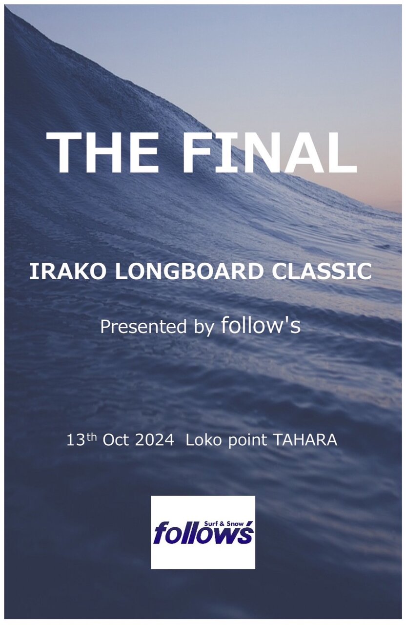 今年もメインスポンサーにfollow’s 様を迎え「第27回伊良湖ロングボードクラシックpresented by follow’s The FINAL」として開催いたします。最後の大会となりますが、また大勢の方々にお会い出来る事を楽しみにお待ちしておりますので、どうかよろしくお願いいたします。