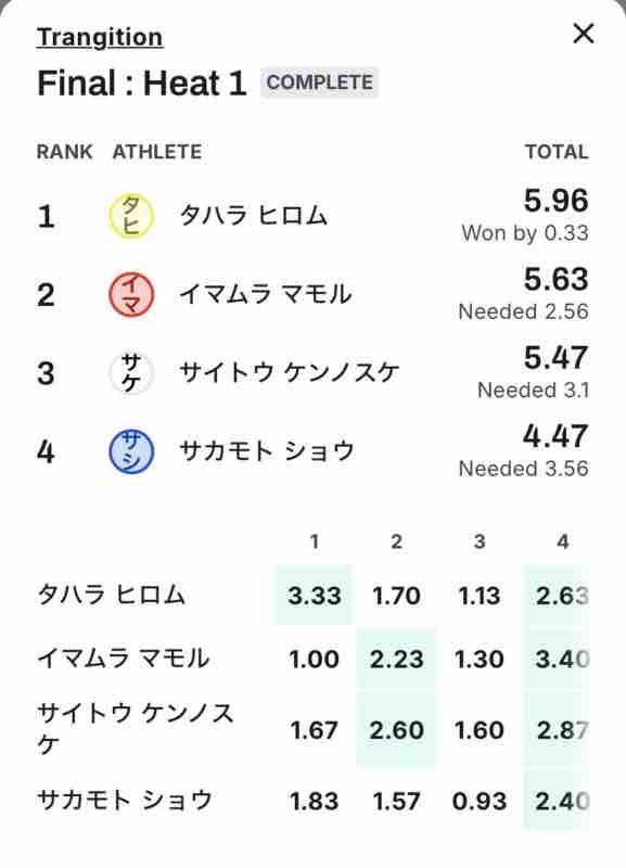 最後まで見応えのあるヒートが続きました。